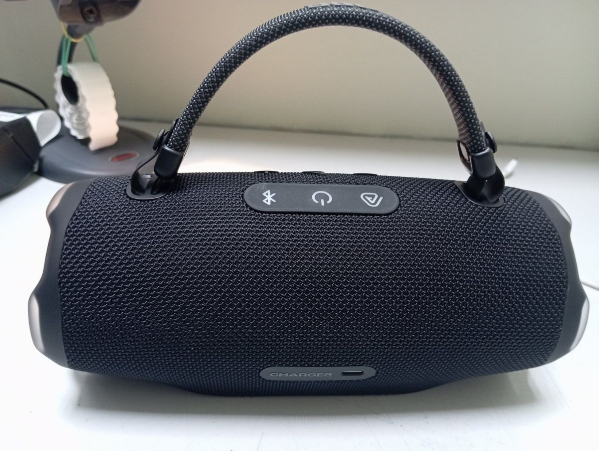 JBL Charge 6 — це портативна акустика з потужним звуком та функцією павербанка. Дана модель у відмінному зовнішньому стані, корпус чорного кольору без видимих пошкоджень, подряпин чи сколів. Пристрій зберіг усі свої ключові функції: водонепроникність за стандартом IP67, час автономної роботи до 20 годин, можливість заряджати інші гаджети через USB-порт. Динамики забезпечують чистий та насичений бас, характерний для серії Charge. Акустика готова до використання та постачається з гарантією.