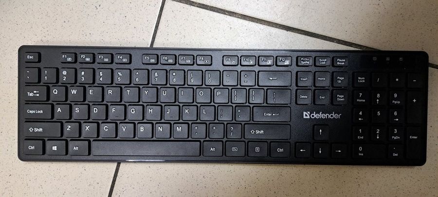 Бездротовий комплект клавіатури та миші Defender Lima C-993 у відмінному стані, повністю робочий, без дефектів. Компактна клавіатура з низькопрофільними клавішами та мишка з оптичним сенсором — ідеальне рішення для дому чи офісу. Підключаються через єдиний USB-ресивер (2.4 ГГц), дальність дії до 10 метрів. Клавіатура має 12 мультимедійних клавіш швидкого доступу. Колір чорний, стан як новий. Гарантії немає.