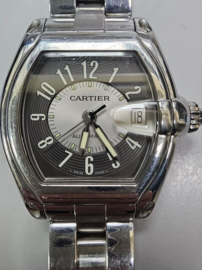 Roadster 2510 від Cartier. У цій моделі поєднуються французький шик та швейцарська точність. Дизайн колекції натхнен автомобільною естетикою 50х-60х років. Часу розкішних кабріолетів та відчайдушних гонок. Сталевий корпус у формі Tonneau і сапфірове скло з Циклопом надають годиннику впізнаваємий образ. Розмір вигнутого по руці корпусу 37 х 44 мм. Що робить їх зручними для носіння як на чоловічій, так і на жіночій руці.