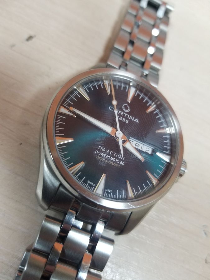 Модель DS Day-Date від Certina. Новий погляд на повсякденний чоловічий годинник. Класичний дизайн, водонепроникність до 200 метрів. Смарагдовий циферблат з додатковою індикацією дати і дня тижня. Оновлений автоматичний механізм із запасом ходу до 80 годин.
