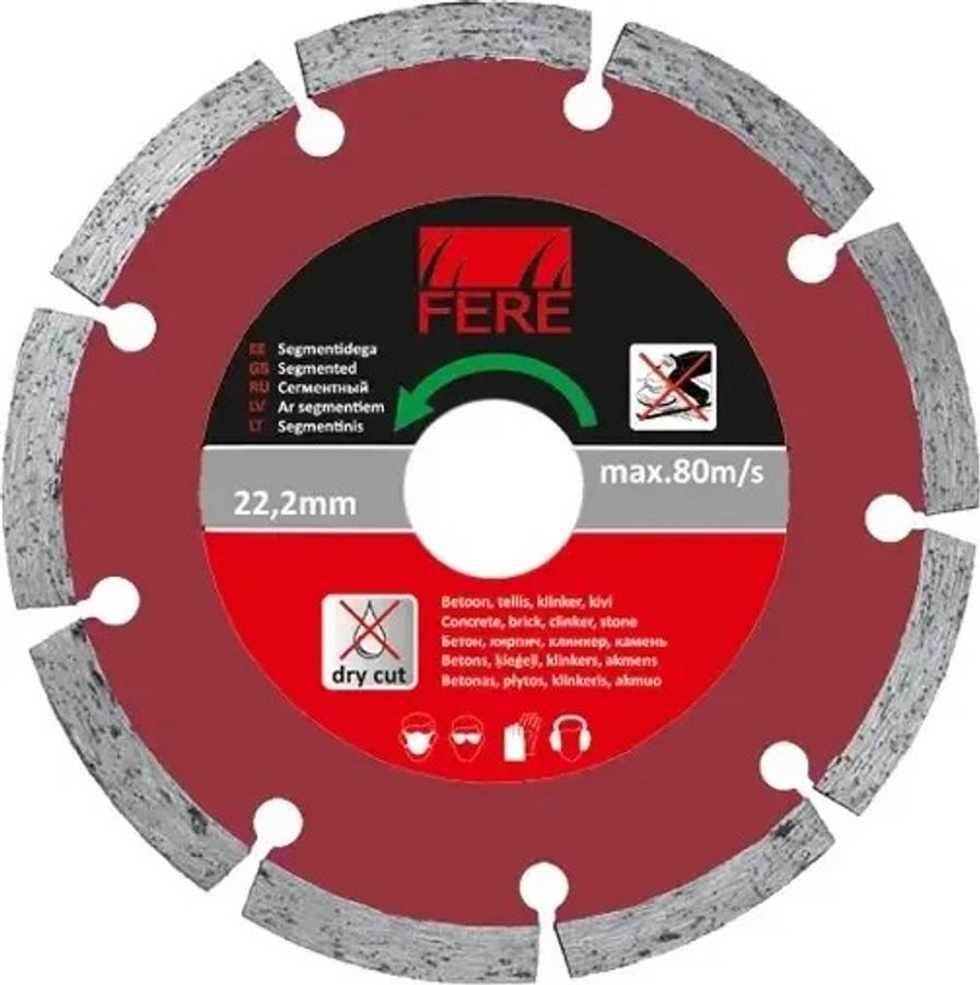 Алмазний диск Fere 125 mm призначений для сухого та умовно вологого різання мінеральних будівельних матеріалів, зокрема бетону, цегли, тротуарної плитки, кераміки та окремих видів природного каменю, за умови дотримання рекомендацій виробника щодо сумісних матеріалів. Робочий діаметр 125 мм робить цю модель придатною для більшості ремонтно-оздоблювальних задач, де потрібен акуратний контрольований різ на невеликій глибині. Сталевий корпус диска з алмазним напиленням спроєктований так, щоб зберігати форму та стійкість під час значних навантажень, а рівномірний розподіл алмазних зерен по кромці сприяє більш стабільному ходу та зменшенню ймовірності сколів за правильно підібраної швидкості різання. Диск розрахований на роботу з кутовими шліфувальними машинами відповідного посадкового розміру; перед монтажем важливо звірити параметри інструмента з маркуванням на диску й не перевищувати граничні оберти, зазначені виробником. У професійному та побутовому застосуванні Fere 125 mm може використовуватися під час укладання плитки, виконання штроб, підрізання елементів кладки та інших операцій, де важлива точна геометрія різу. Під час купівлі б/в диска доцільно оцінити залишкову висоту алмазного шару й відсутність деформацій, що дозволяє раціонально використати ресурс і зменшити витрати без погіршення якості робіт.