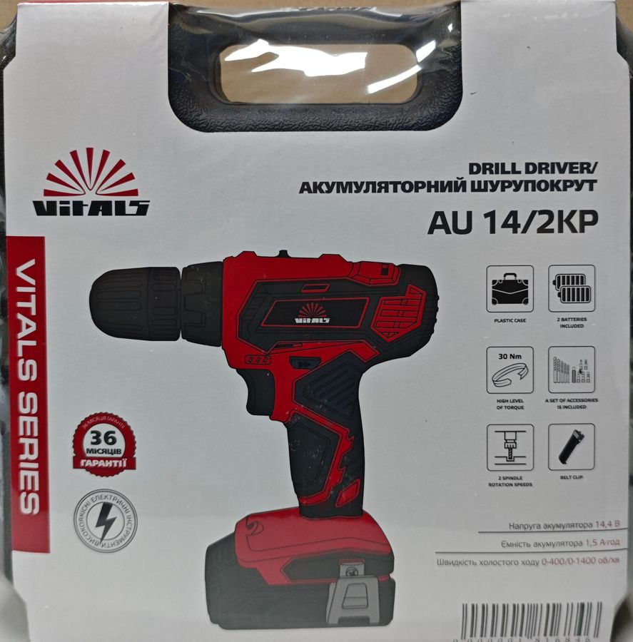 Акумуляторний шуруповерт Vitals AU 14/2KP — це компактний та надійний інструмент для побутових та професійних завдань. Модель оснащена двома літій-іонними акумуляторами ємністю 1.5 А·год, що забезпечує тривалу автономну роботу. Інструмент має два швидкісні режими та реверс, що дозволяє ефективно закручувати та викручувати кріплення, а також свердлити отвори в дереві та металі. Конкретно цей екземпляр знаходиться у стані нового товару, без слідів експлуатації, дефектів чи пошкоджень. Всі елементи управління працюють коректно, патрон надійно затискає біти. Повна комплектація включає обидва акумулятори, зарядний пристрій та кейс для зберігання. Це готовий до роботи інструмент у відмінному стані.
