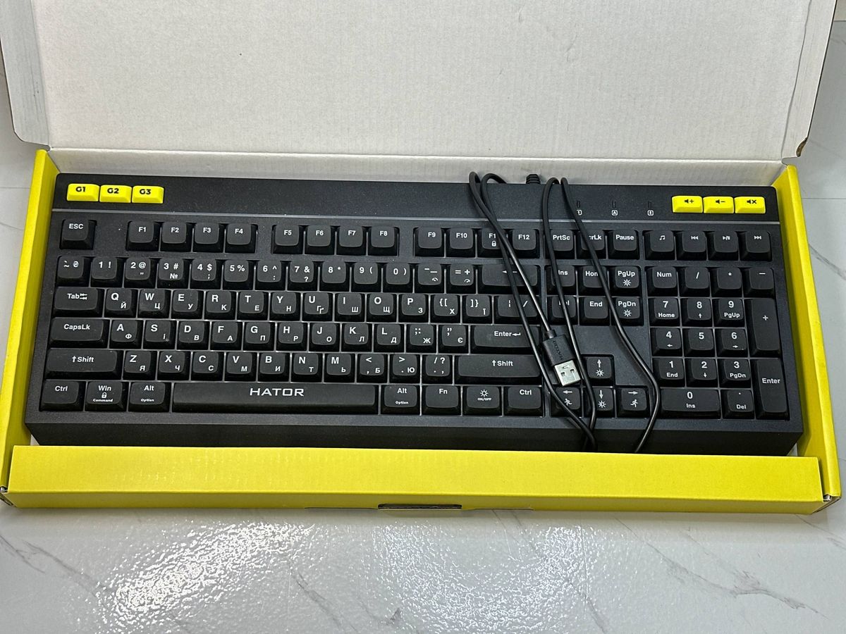 Ігрова клавіатура Hator Icefall – це повнорозмірне дротове рішення з тихими мембранними перемикачами, яке забезпечує комфортний набір тексту та точне керування у динамічних іграх. Клавіатура оснащена насиченим RGB-підсвічуванням з розділенням на 8 зон та кількома попередньо встановленими ефектами, що дозволяє налаштувати яскравий і індивідуальний вигляд робочого місця. Підключення здійснюється через USB із частотою опитування 1000 Гц, що гарантує швидку реакцію без затримок. Використовуються кейкапи з ABS-пластику з лазерним гравіюванням та УФ-покриттям, тому маркування стійке до стирання навіть при інтенсивному щоденному використанні. Дана модель у стані «відмінний»: мінімальні сліди використання, акуратний зовнішній вигляд, без дефектів корпусу та клавіш