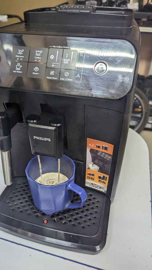 Особливості:регулювання ступеню помелу зерна, вбудована кавомолка, подача гарячої води , вибір об`єму порції, дренажний відсік для капель, автоматична очистка від накипу, автовимикання, регулювання міцності кави