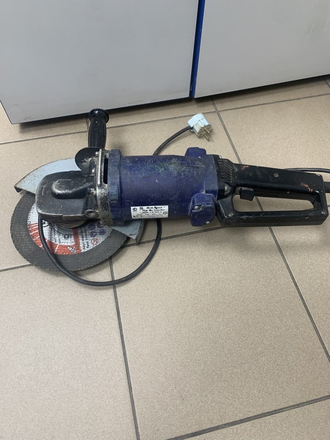 Кутова шліфмашина Лепсе МШУ-1,8-230-А. Ця модель оснащена потужним двигуном на 1,8 кВт і призначена для роботи з дисками діаметром 230 мм, що дозволяє виконувати різання та шліфування великих заготовок, включаючи бетон і камінь. Корпус пофарбований у синій колір. Інструмент був у експлуатації та має сліди використання: потертості, сколи фарби, можливі забруднення. Дана модель відрізняється високою продуктивністю та надійністю, що підтверджується довгим терміном служби при правильній експлуатації. Підходить для ремонтних та будівельних робіт.