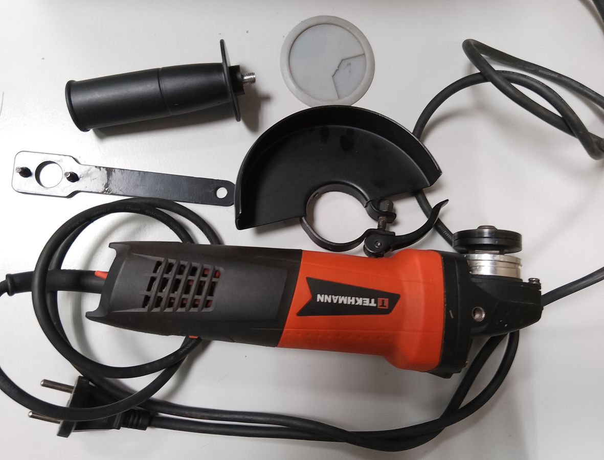Гарна, повністю робоча кутова шліфмашина. Мінімальні сліди використання. Іскрінь та сторонніх звуків при роботі не має. Є регулятор обертів. В комплекті захисний кожух, ручка, інструкція, ключ та коробка.