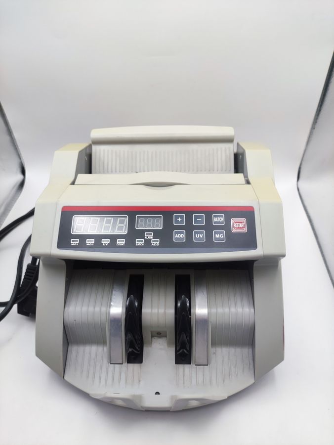 Лічильник банкнот Bill Counter 2089 UV/MG — це професійна модель для швидкого та точного перерахування купюр. Цей пристрій б/в знаходиться у доброму робочому стані, готовий до негайного використання. Корпус виконаний у сірому кольорі та має незначні сліди експлуатації: потертості та дрібні подряпини, що не впливає на функціональність. Модель 2089 оснащена ультрафіолетовим (UV) та магнітним (MG) детекторами для перевірки автентичності банкнот, що забезпечує додаткову безпеку при роботі з готівкою. Апарат демонструє стабільну роботу, точний підрахунок та надійне виявлення фальшивок. Це практичне рішення для роздрібної торгівлі, офісу або пункту обміну валют, де потрібен ефективний підрахунок грошей з перевіркою захисту.