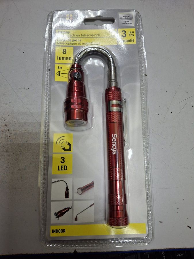 Ручний ліхтарик Sencys телескопічний з магнітом — практичний інструмент для підсвічування важкодоступних місць і діставання дрібних металевих предметів там, куди складно дістатися рукою. Компактний корпус зручно лежить у долоні й легко вміщується в кишені або шухляді з інструментами, тому ліхтар зручно брати із собою в гараж, майстерню, автомобіль чи на дачу. Телескопічна конструкція дає змогу висувати робочу частину на значну відстань і акуратно підводити джерело світла до потрібної точки, що особливо корисно під час обслуговування двигуна, сантехнічних робіт, огляду ніш, шаф та інших вузьких просторів. Магнітний наконечник допомагає безпечно підняти впалі шурупи, гайки, свердла та інші дрібні деталі, не розбираючи конструкцію й без додаткових пристосувань. Спрямоване світло полегшує візуальний контроль з’єднань, кромок і швів, що важливо для автомобілістів, домашніх майстрів і сервісних фахівців. Купівля такої моделі у вживаному стані може бути економічно виправданою за умови збереження справної роботи ліхтаря, цілісності корпусу та надійності телескопічного механізму.