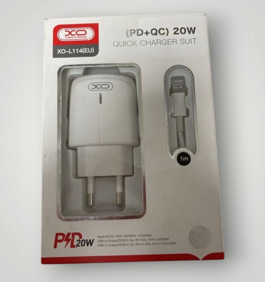 Б/в Мережевий зарядний пристрій Xo l114+ lightning 01-200889790