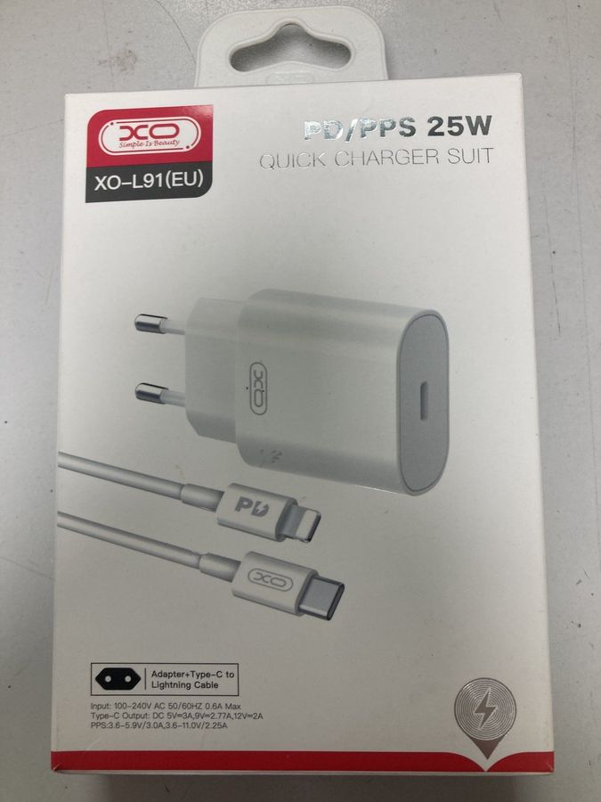 Мережевий зарядний пристрій Xo l91+ lightning б/в новинки