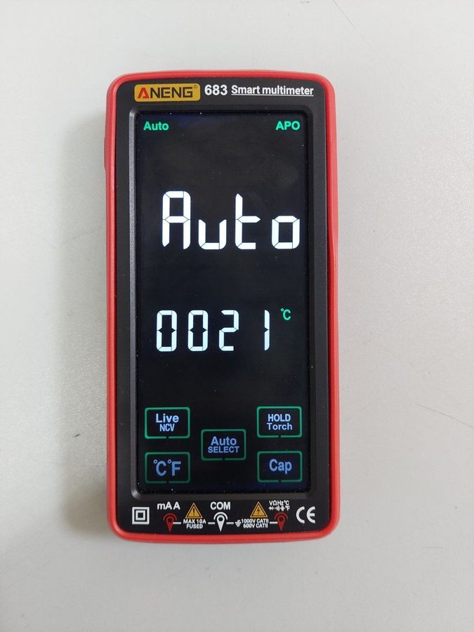 Мультиметр Aneng AN-683 — це компактний та функціональний цифровий прилад для базових вимірювань. Модель AN-683 відома своєю простотою та надійністю у побутовому використанні. Цей екземпляр знаходиться у хорошому робочому стані, з незначними слідами експлуатації на корпусі, що свідчить про акуратне застосування. Всі основні функції, такі як вимірювання постійної та змінної напруги, сили струму, опору, перевірка діодів та цілісності ланцюга, працюють коректно. Корпус червоного кольору зберіг свою цілісність, без тріщин. Дисплей чітко відображає показання. Пристрій постачається у частковій комплектації. Це практичний та готовий до роботи інструмент для домашнього майстра.