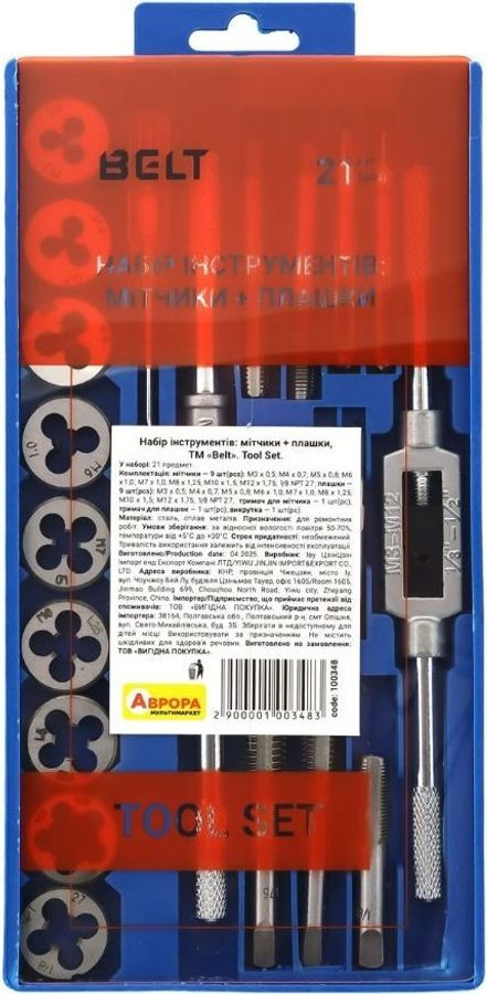 Belt : мітчики + плашки 21 предмет