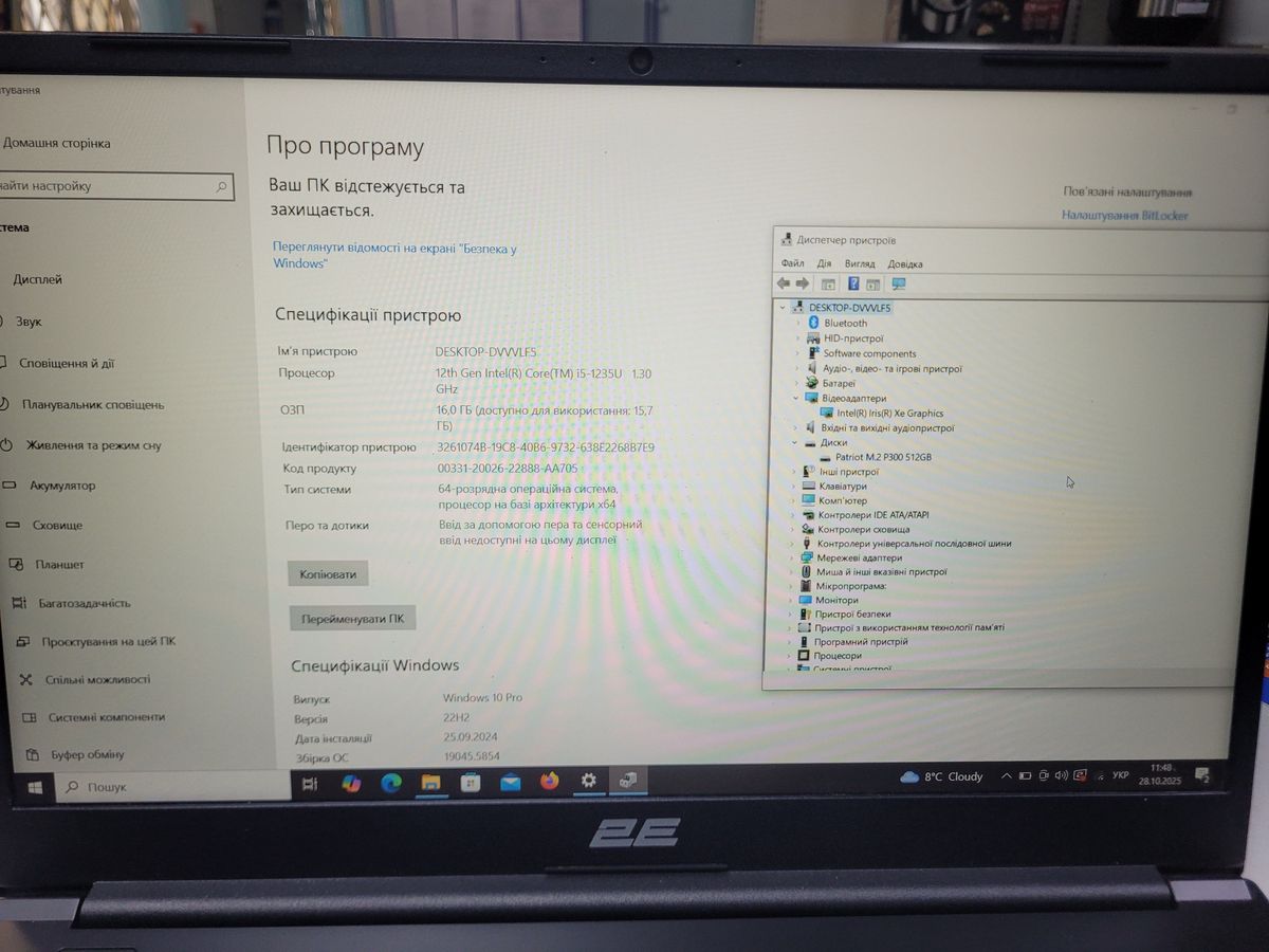 Ноутбук 2E 15/core i5-1235u ddr5/16gb ddr5/hdd *відсутній/ssd 512 gb/*інтегрована б/в Місто — Рівне
