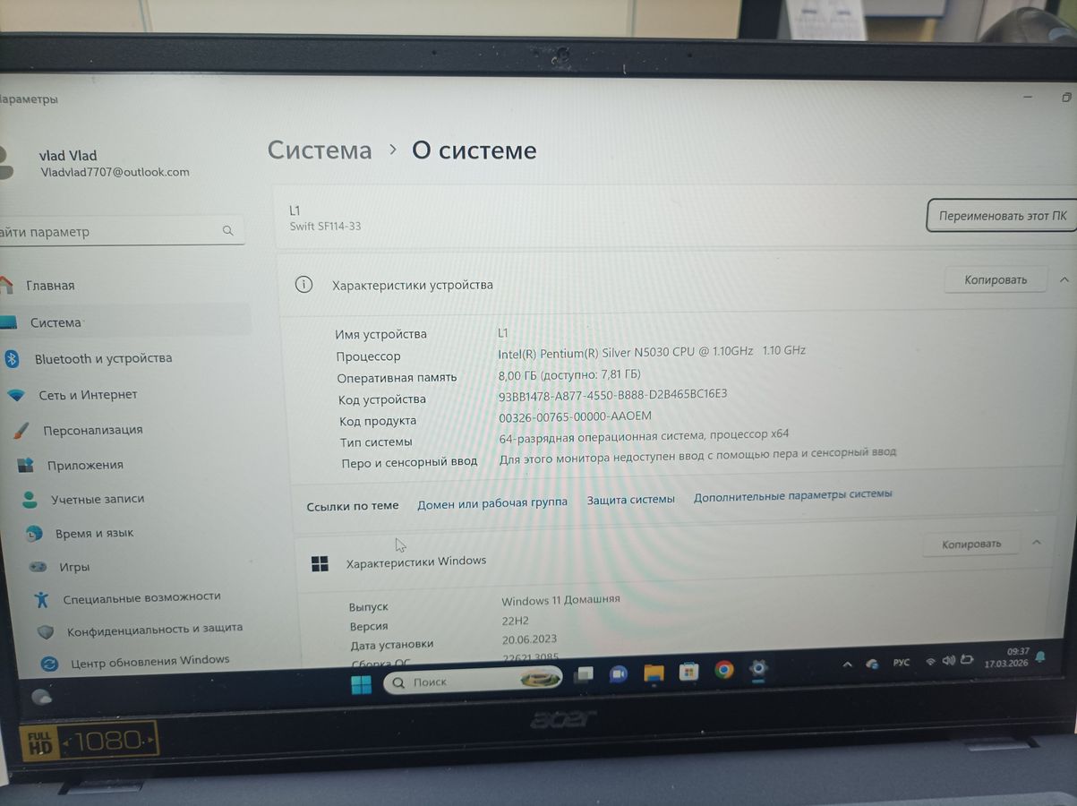 Характеристики Ноутбук Acer 14/pentium n5030 siver ddr4/8gb ddr4/ssd 256 gb/*інтегрована: