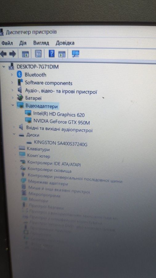 Характеристики 15/core i5 7200u ddr3/8gb ddr3/hdd *відсутній/ssd 240 gb/geforce gtx950m: