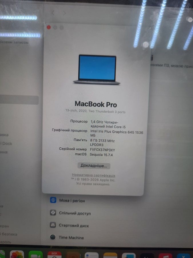 Цей MacBook Pro 13,3 дюйма — надійний і перевірений часом інструмент для повсякденних завдань. Модель оснащена енергоефективним процесором Intel Core i5 з тактовою частотою 1,4 ГГц, 8 ГБ оперативної пам`яті та швидким SSD-накопичувачем на 256 ГБ, що забезпечує відповідну роботу системи та достатній простір для файлів. Дисплей Retina з технологією True Tone автоматично налаштовує кольорову температуру під навколишнє освітлення, зменшуючи навантаження на очі. Пристрій має Touch Bar — сенсорну панель, яка змінює функції залежно від програми. Графічний процесор Intel Iris Plus 645 справляється з офісними додатками, веб-серфінгом та обробкою фото. Ноутбук виконаний у класичному сірому корпусі. Стан пристрою дозволяє йому виконувати основні завдання і стане чудовим вибором для тих, хто шукає доступний варіант в екосистемі Apple.