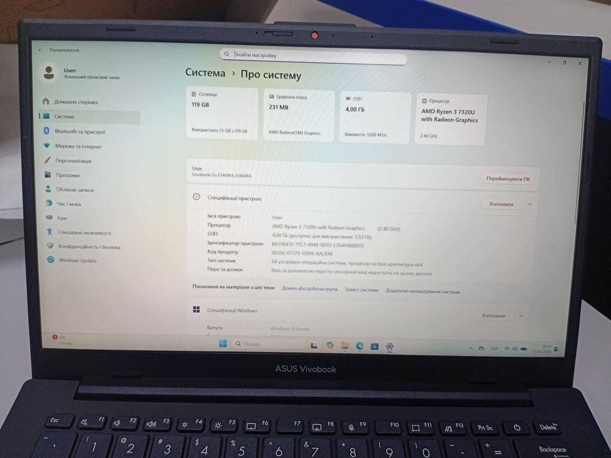 Ще 2 фото Asus 14/ryzen 3 7320u ddr5/4gb ddr5/ssd 120 gb/*інтегрована