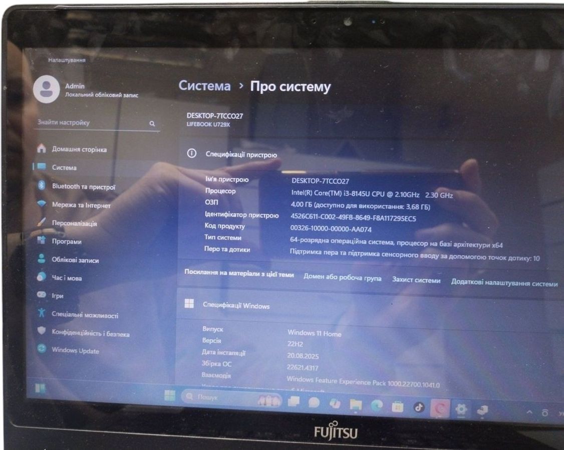 Ноутбук Fujitsu 12/core i3 8145u ddr4/4gb ddr4/hdd *відсутній/ssd 128 gb/*інтегрована б/в Місто — Тернопіль