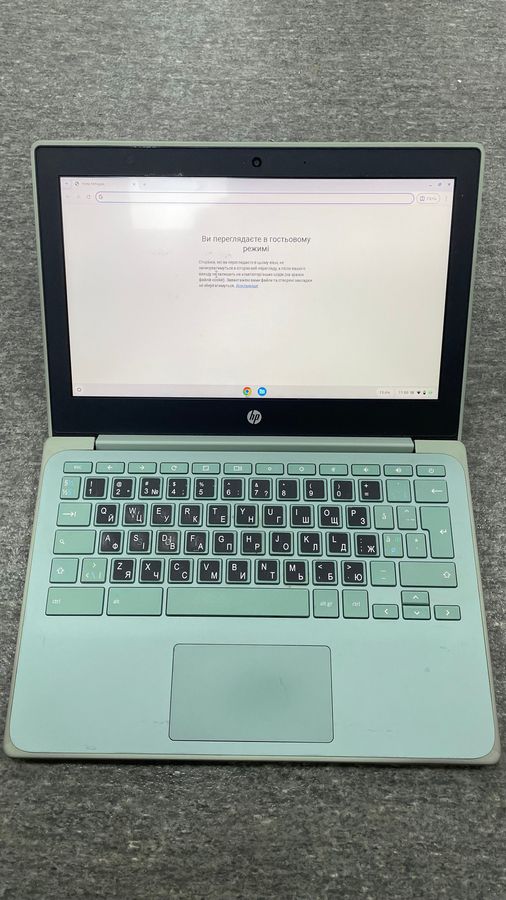 HP Chromebook 11A G8 EE, модель 2020 г. Потертості/подряпини по корпусу. Подряпини на екрані. Скинутий до заводських налаштувань. Весь функціонал пристрою працює справно. В наявності блок живлення.
