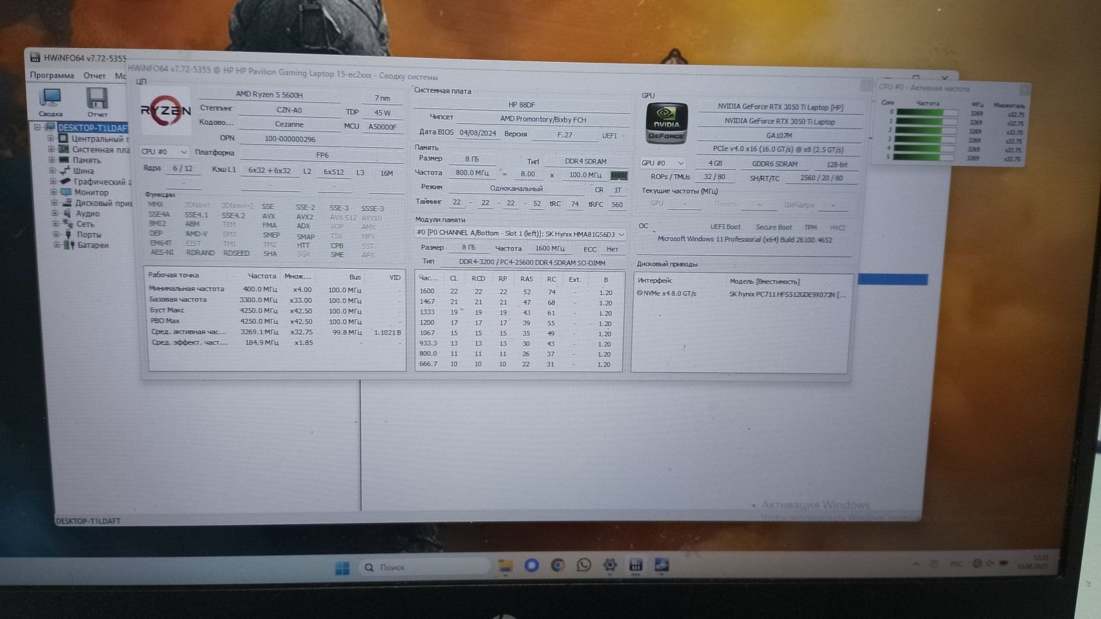 Характеристики Ноутбук Hp 16/ryzen 5 5600h ddr4/8gb ddr4/hdd 80 gb/ssd 512 gb/geforce rtx3070ti 8gb: