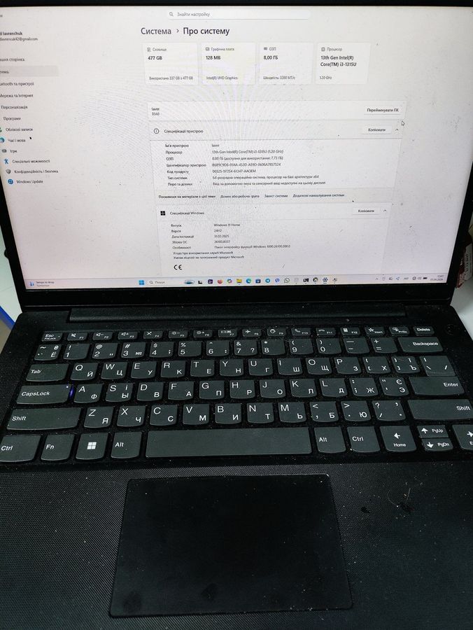 Lenovo 15/core i3-1315u ddr5/8gb ddr5/hdd *відсутній/ssd 512 gb/*інтегрована