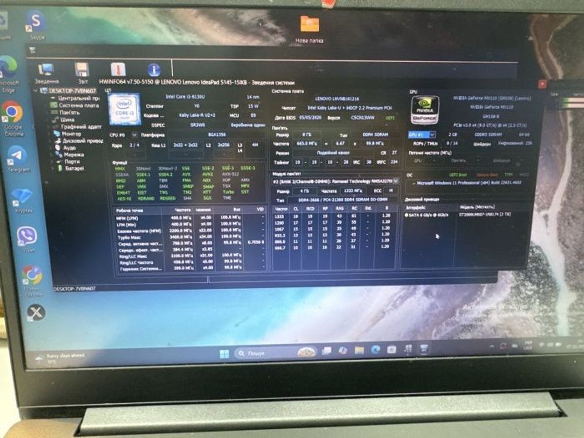 Характеристики 15/core i3 8130u ddr4/8gb ddr3/hdd *відсутній/ssd 2000 gb/geforce mx110 2gb: