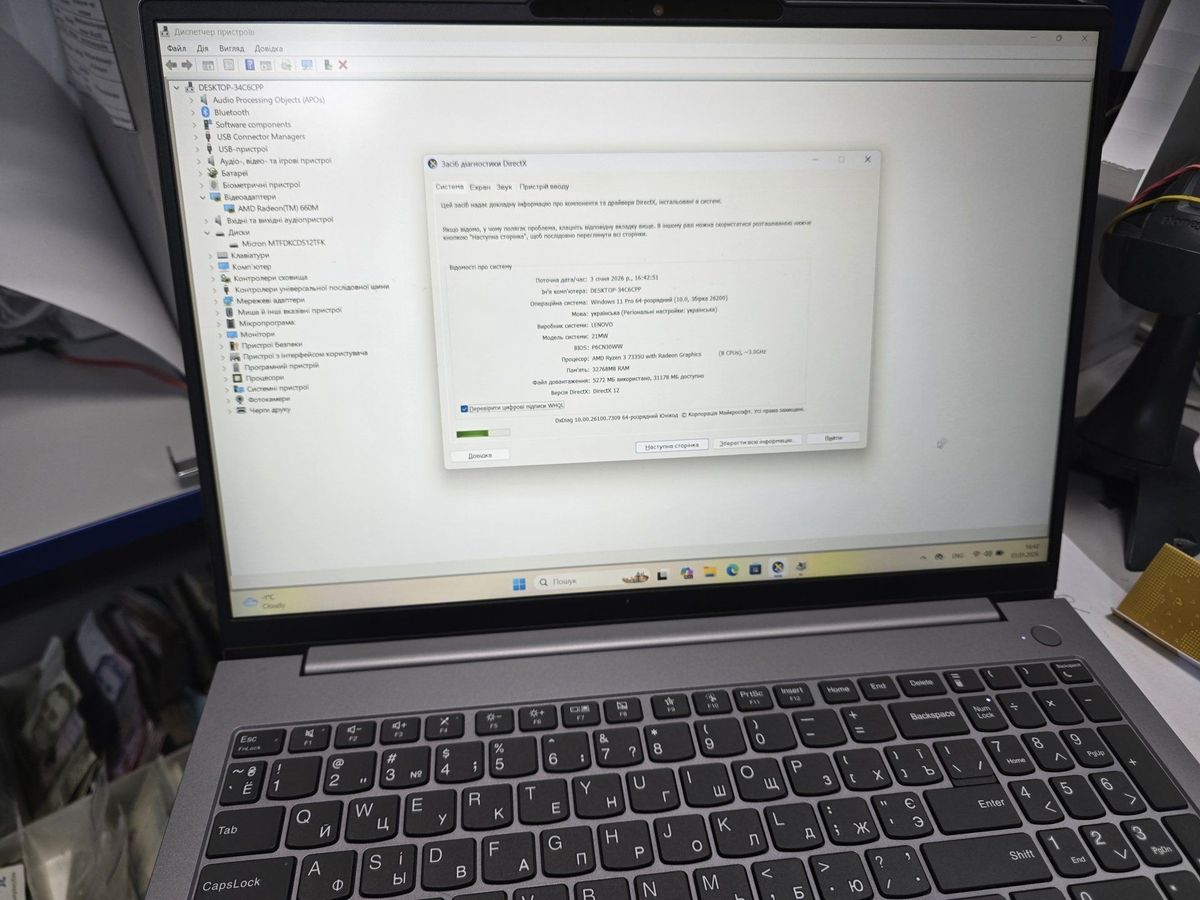 Lenovo 15/ryzen 3 7335u ddr5/32gb ddr5/hdd *відсутній/ssd 512 gb/*інтегрована