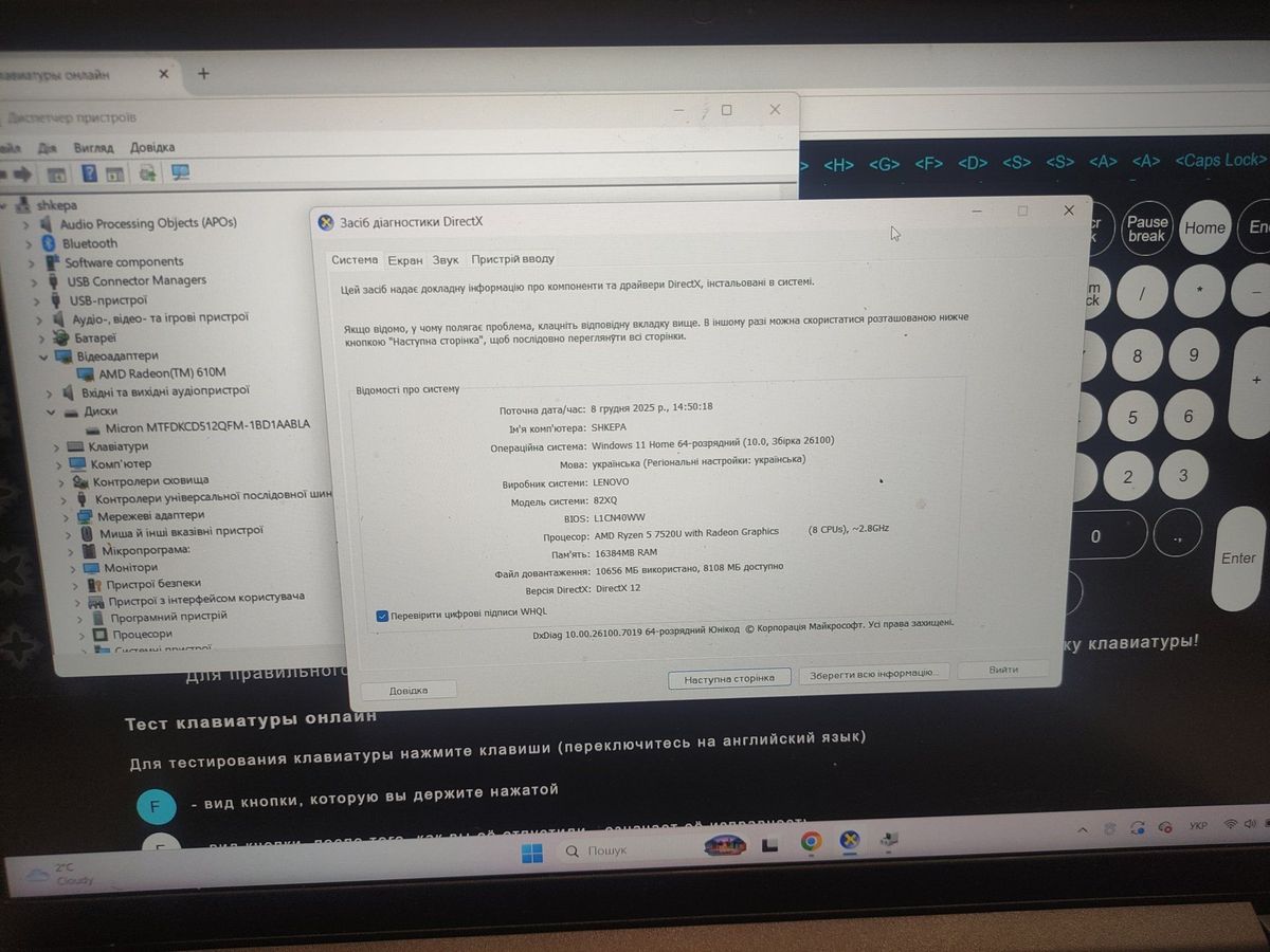 Характеристики Ноутбук Lenovo 15/ryzen 5 7520u ddr5/16gb ddr5/hdd 500 gb/*інтегрована: