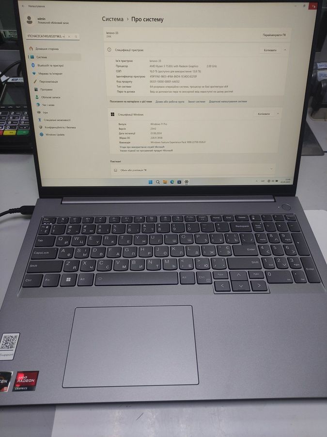 Ноутбук Lenovo 15/ryzen 5 7530u ddr4/16gb ddr4/hdd *відсутній/ssd 512 gb/*інтегрована