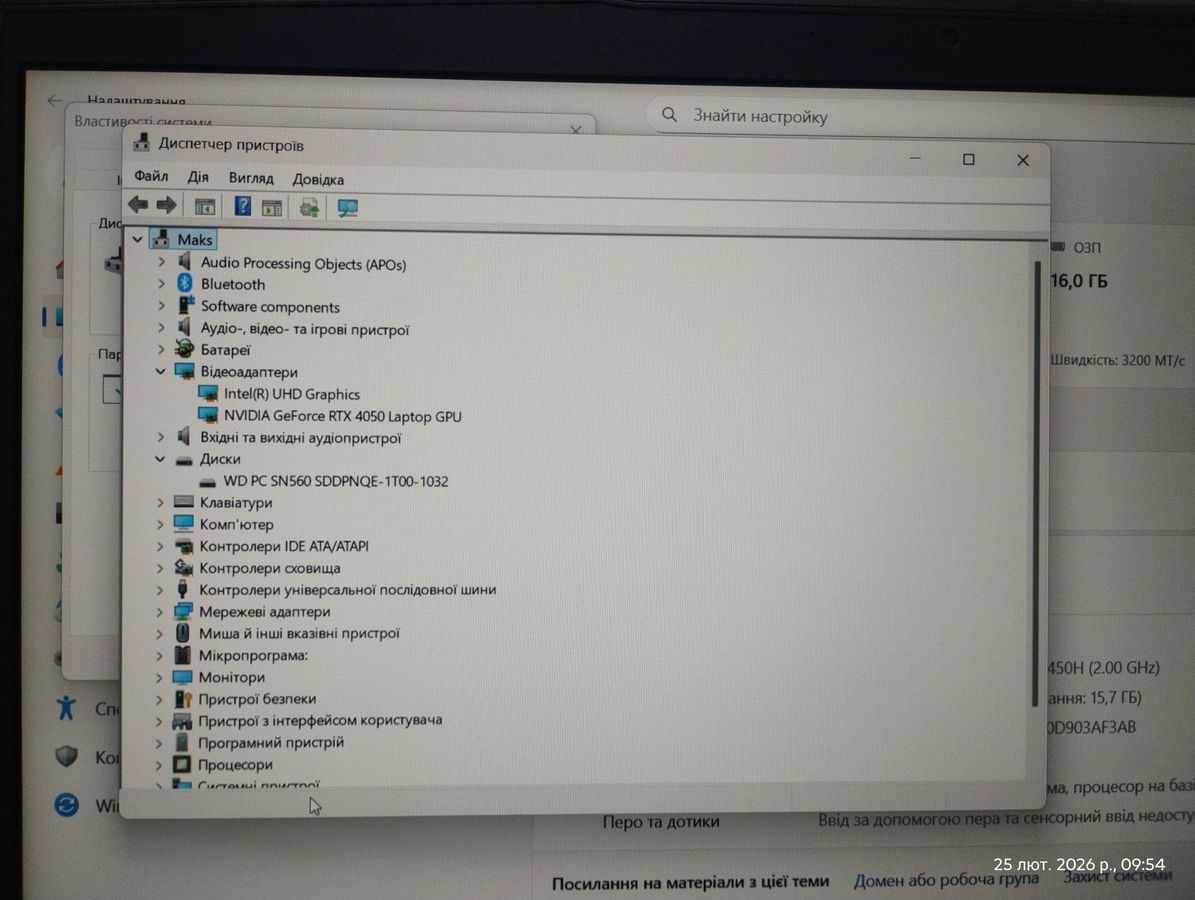 Характеристики 15/core i5-12450h ddr5/16gb ddr5/hdd *відсутній/ssd 1000 gb/geforce rtx4050 6gb: