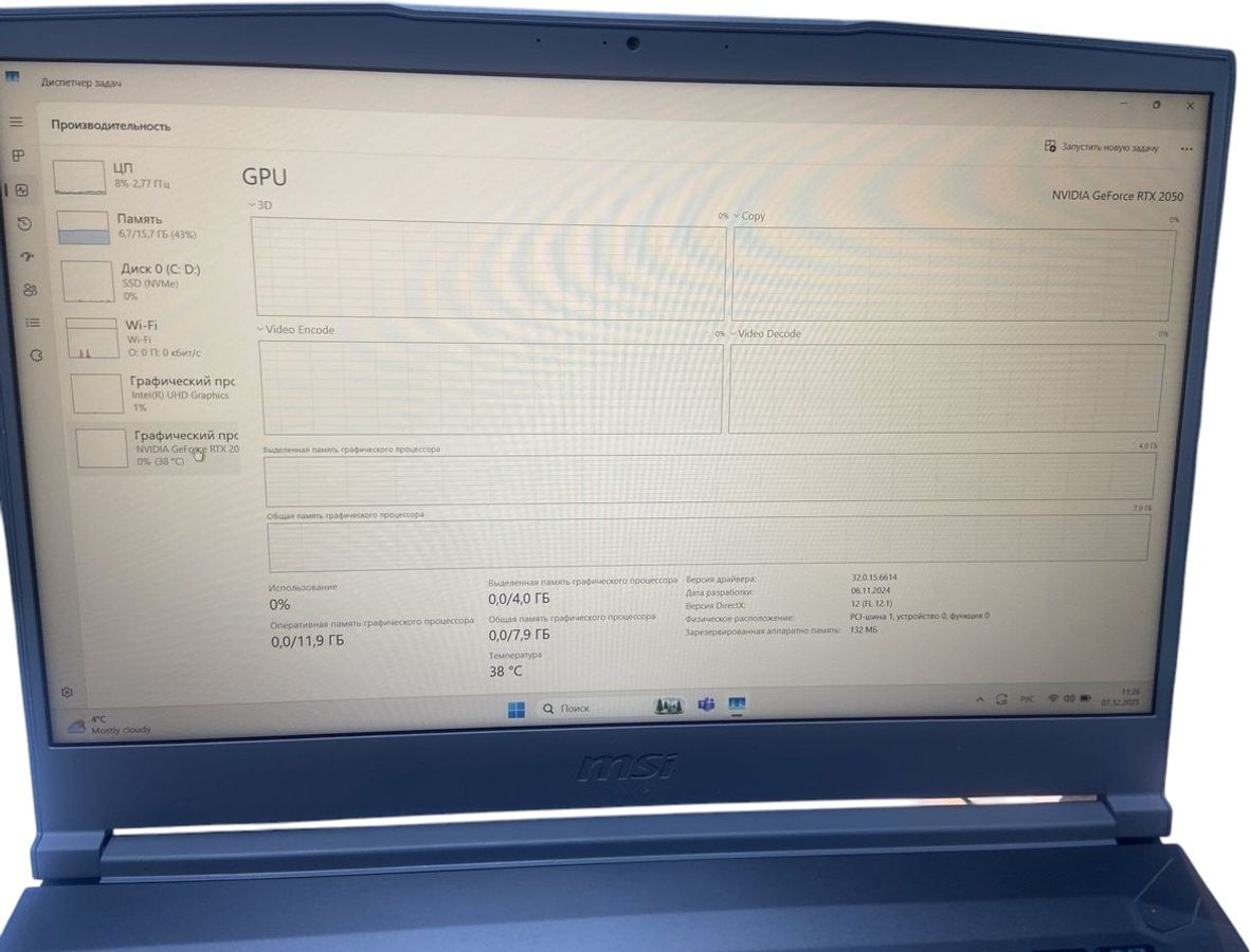 Ще 2 фото Msi 15/core i5-12450h ddr5/16gb ddr5/ssd 500 gb/geforce rtx2050 4gb