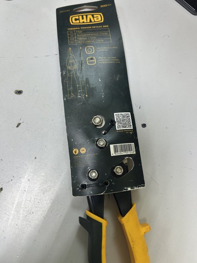 Ножиці по металу Сила 310744 – ручний слюсарний інструмент, призначений для акуратного різання листового металу під час монтажних, ремонтних та побутових робіт. Конструкція ножиць дає змогу виконувати прямолінійний і нескладний фігурний різ тонколистової сталі, оцинкованої бляхи, алюмінієвого чи мідного листа в межах товщини, рекомендованої виробником, що робить модель універсальною для домашньої майстерні та невеликого виробництва. Ретельно підігнані ріжучі кромки забезпечують чистий різ без виражених задирок, зменшуючи потребу в додатковій обробці краю заготовки. Зручні подовжені руківʼя створюють хороше плече прикладання зусилля і допомагають контролювати напрямок різу, що особливо важливо під час роботи на вазі або в обмеженому просторі. Міцний шарнірний вузол надійно фіксує половинки ножиць і сприяє стабільній роботі інструмента за регулярних навантажень. Модель не потребує підключення до електромережі, проста в обслуговуванні й готова до використання практично в будь-яких умовах, де потрібен мобільний ручний інструмент. Ножиці Сила 310744 підійдуть для робіт з покрівельним і фасадним металопрокатом, під час виготовлення вентиляційних коробів, ремонту кузовних елементів, а також виготовлення чи підрізання металевих кутиків, смуг і монтажних стрічок. Обираючи вживаний інструмент цієї моделі, варто оцінити стан ріжучих кромок і відсутність люфтів у шарнірі, оскільки це безпосередньо впливає на якість різу та подальший ресурс експлуатації.