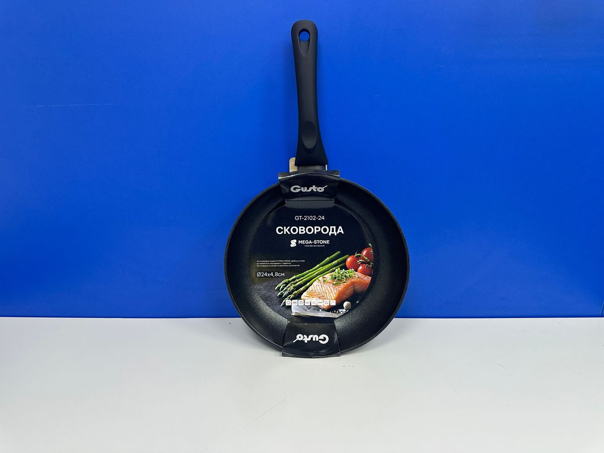 Пательня Gusto GT-2102-24 — це модель з антипригарним покриттям чорного кольору. Покриття перебуває у відмінному стані, без видимих подряпин чи сколів, що свідчить про акуратне використання попереднім власником. Алюмінієвий корпус забезпечує швидкий та рівномірний нагрів, а зручна ручка з термостійкого матеріалу робить процес приготування безпечним. Пательня повністю готова до використання, зберегла всі свої заводські властивості та не потребує додаткового догляду. Ідеальний варіант для щоденного приготування яєчні, омлетів, млинців чи підсмажування м`яса та овочів без зайвої олії.
