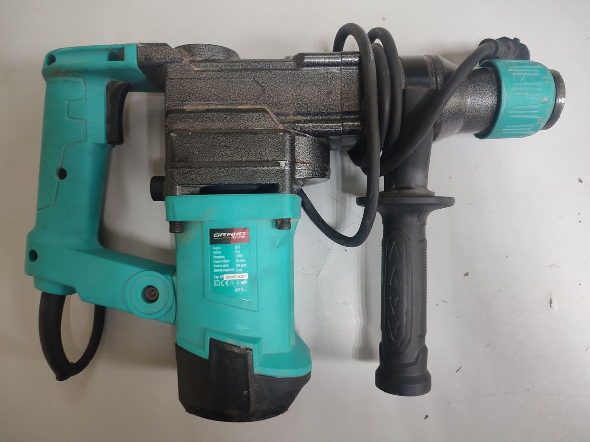 Перфоратор Grand ПЕ-1700 — потужний та надійний інструмент для професійного та побутового використання. Модель оснащена двигуном на 1700 Вт, що забезпечує високу продуктивність при свердлінні та довбанні бетону, цегли та каменю. Даний екземпляр знаходиться у доброму робочому стані, з незначними слідами експлуатації, що свідчить про акуратне використання попереднім власником. Корпус інструменту виконаний у класичному синьо-блакитному кольорі. Перфоратор підтримує три режими роботи: свердління, свердління з ударом та довбання, а також оснащений системою захисту від пилу та функцією реверсу. Інструмент готовий до негайного використання для виконання широкого спектру будівельних та ремонтних завдань.