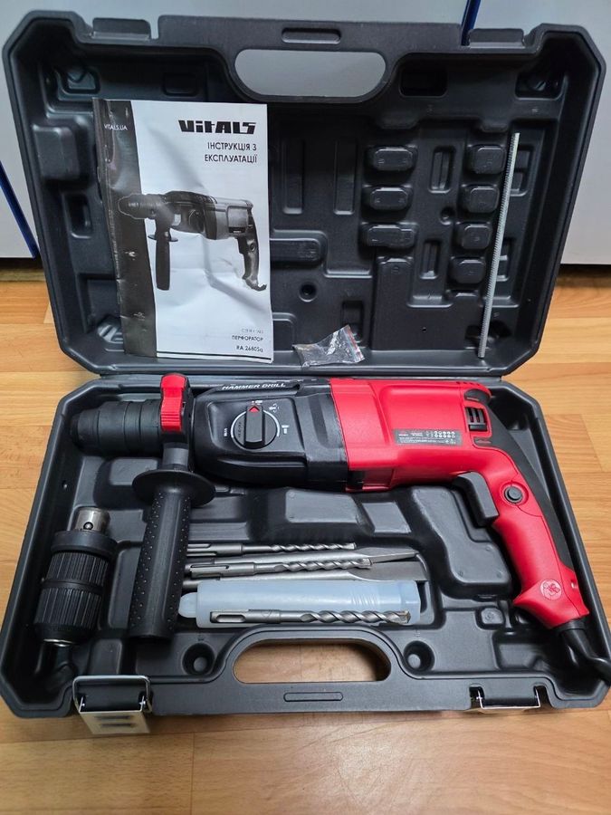 Перфоратор Vitals Ra 2680Sq – потужний та надійний інструмент для професійного використання. Модель Ra 2680Sq відома своєю продуктивністю та довговічністю. Дана конкретна позиція знаходиться у стані, нового, без слідів експлуатації. Усі механізми працюють коректно, перемикання режимів (свердління, ударне свердління) відбувається чітко. Інструмент повністю укомплектований усіма штатними комплектуючими елементами, включаючи швидкозахопний патрон, додаткову рукоятку та захисний кожух. Це готове до роботи рішення, що не вимагає додаткових вкладень. Ідеальний вибір для тих, хто шукає якісний перфоратор за привабливою ціною.