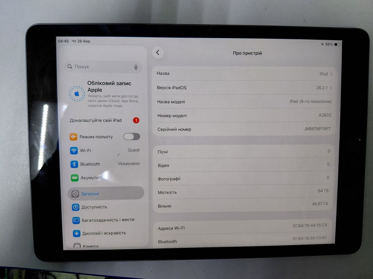 Б/в Планшет Apple ipad 10.2 2021 wi-fi 64gb 01-200904980
