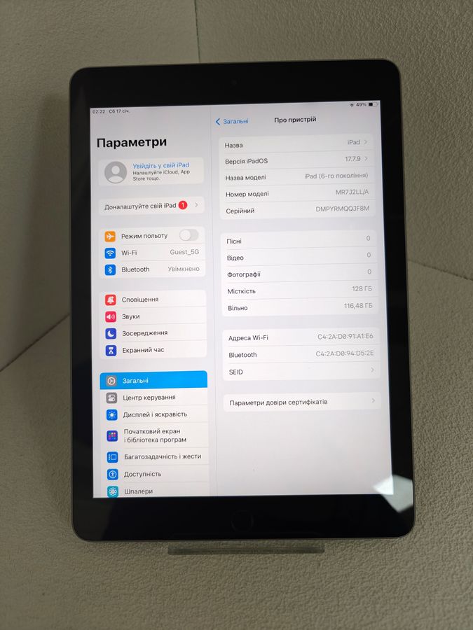 Характеристики Планшет Apple ipad 6 gen 2018 128gb wi-fi: