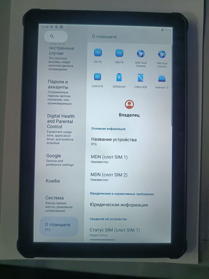 Характеристики Планшет Oukitel rt6 nfc 8/256gb 4g dual sim: