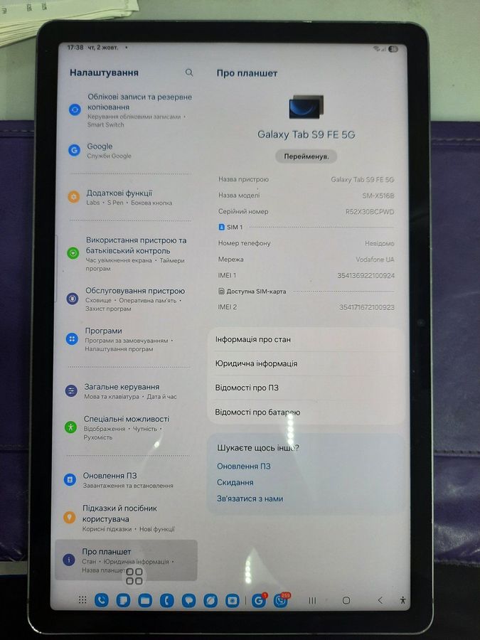 Планшет Samsung galaxy tab s9 fe 5g 6/128gb 01-200778881
