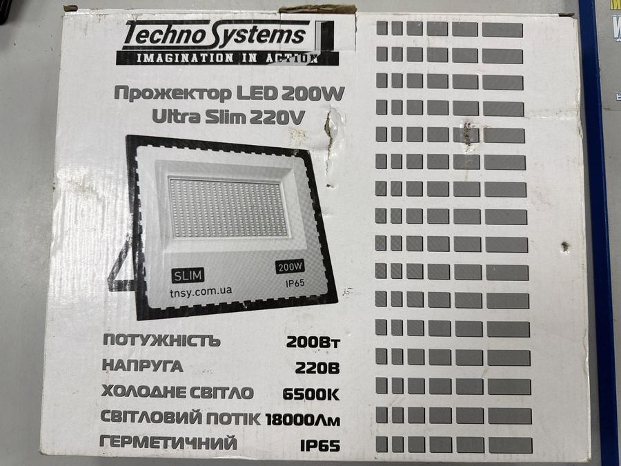 Б/в Прожектор Technosystems led 200w ultra slim 220v 18000lm 6500k ip65 01-200833795