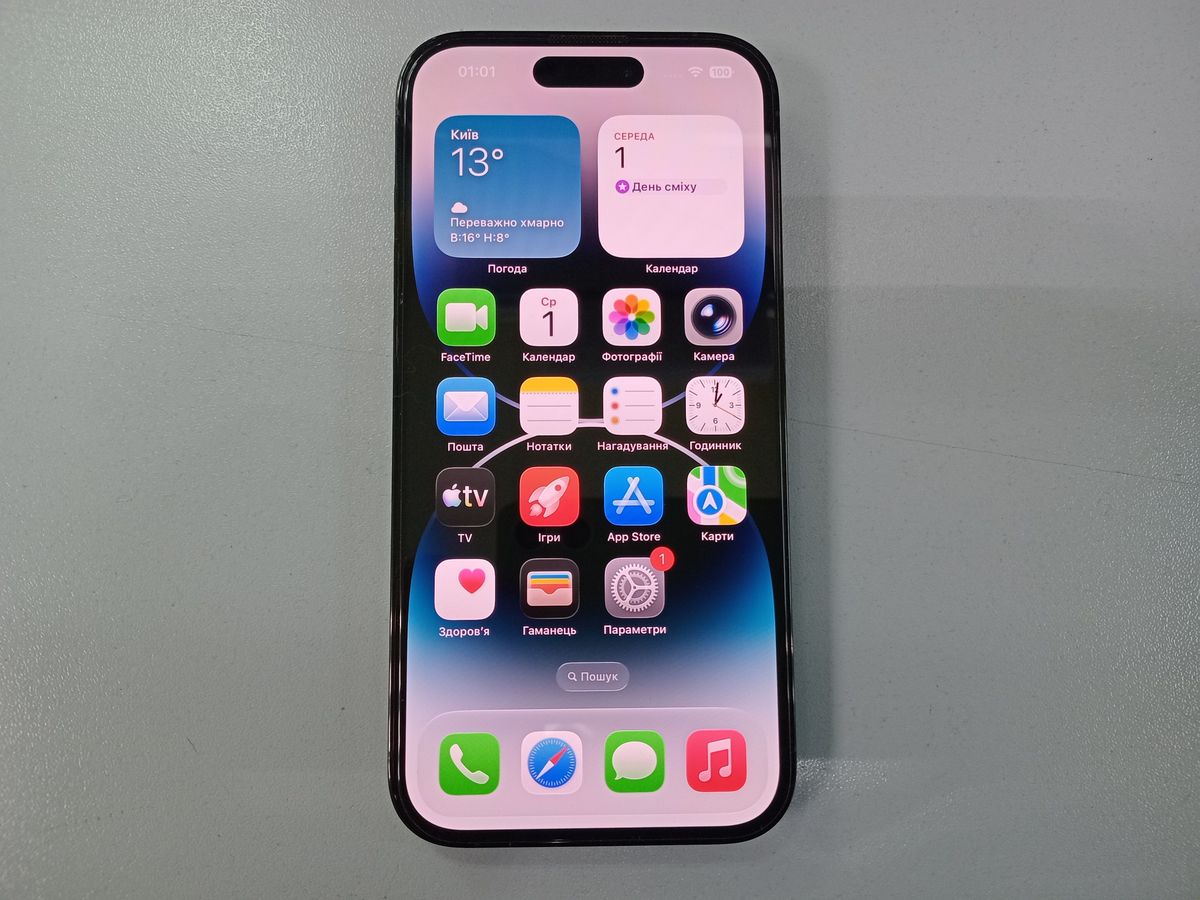 Пропонуємо iPhone 14 Pro 128GB у чорному кольорі у відмінному стані. Ця модель відома своїм динамічним острівцем, камерою на 48 МП та потужним процесором A16 Bionic. Цей примірник не має видимих дефектів, корпус та екран зберегли чудовий зовнішній вигляд. Рівень здоров`я акумулятора становить 96%, що забезпечує тривалу автономну роботу. У комплекті йде USB-кабель для заряджання та синхронізації. Телефон повністю готовий до використання та постачається з гарантією.