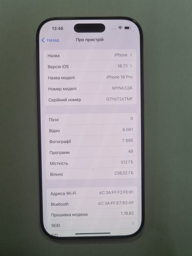 Б/в Мобільний телефон Apple iphone 16 pro 512gb 01-200916187