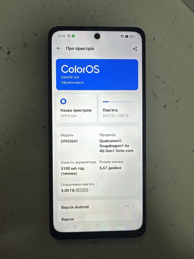 Б/в Мобільний телефон Oppo a3x 4g 4/128gb 01-200918895