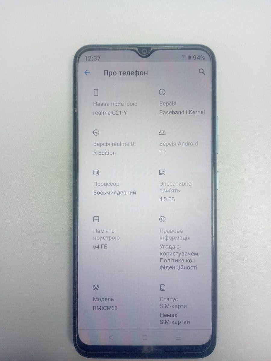 Характеристики Мобільний телефон Realme c21y 4/64gb: