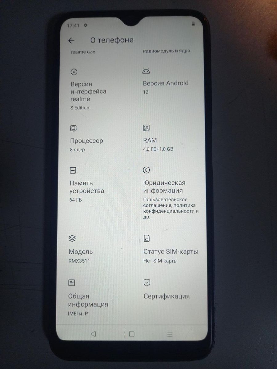 Характеристики Мобільний телефон Realme c35 4/64gb:
