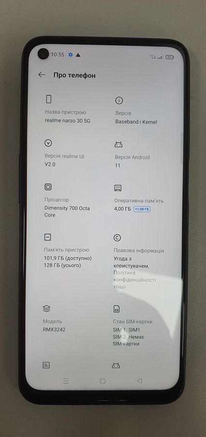 Характеристики Мобільний телефон Realme narzo 30 5g 4/128gb: