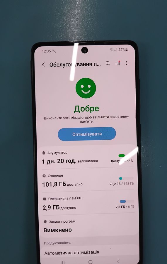 Samsung Galaxy A71 SM-A715F — смартфон середнього класу 2020 року з добрим запасом продуктивності та пам`яті. Ця модель у фіолетовому кольорі перебуває у хорошому робочому стані, з незначними слідами використання. Оснащений великим 6.7-дюймовим Super AMOLED дисплеєм з тонкими рамками, що забезпечує відмінну якість зображення. Всередині встановлено процесор Snapdragon 730 та 6 ГБ оперативної пам`яті, що дозволяє комфортно працювати з додатками та іграми. Об`єм вбудованої пам`яті становить 128 ГБ, її можна розширити за допомогою карти microSD. Основна камера на 64 Мп робить деталізовані знімки, а акумулятор ємністю 4500 мА·ч забезпечує тривалу автономну роботу. Пристрій підтримує швидку зарядку 25 Вт. Смартфон повністю справний, готовий до використання.