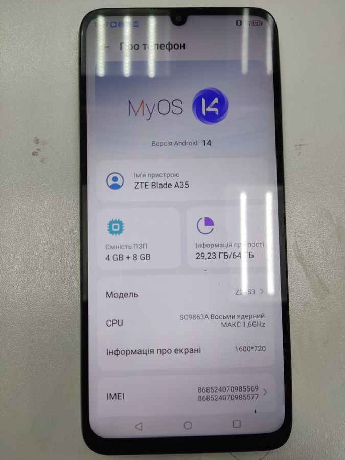 Б/в Мобільний телефон Zte blade a35 4/64gb 01-200803267