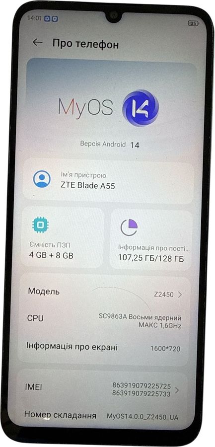 Б/в Мобільний телефон Zte blade a55 4/128gb 01-200867604