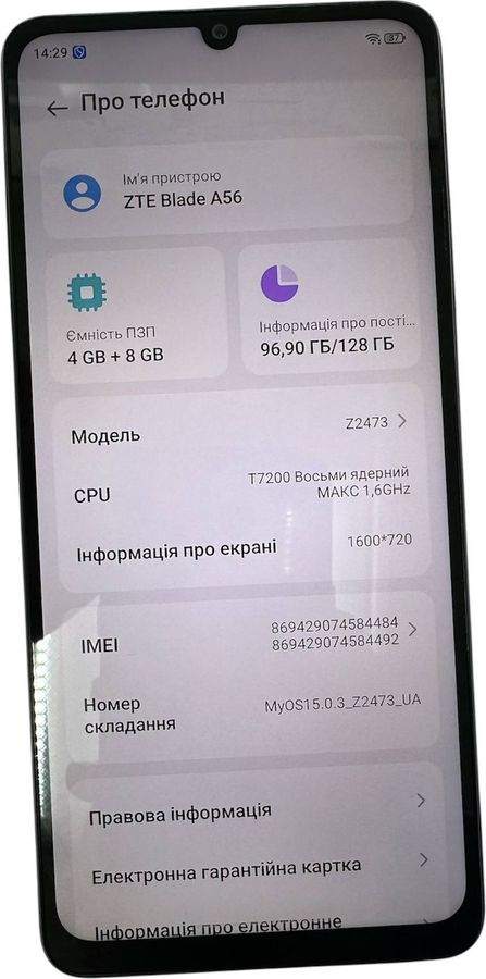 Б/в Мобільний телефон Zte blade a56 4/128gb 01-200880569